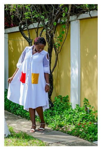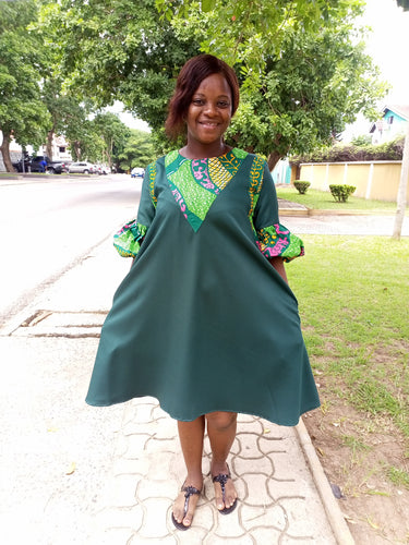 NANS WAX COLLAR DRESS- Ankara with Collar Gathered Dress
